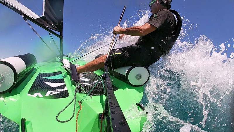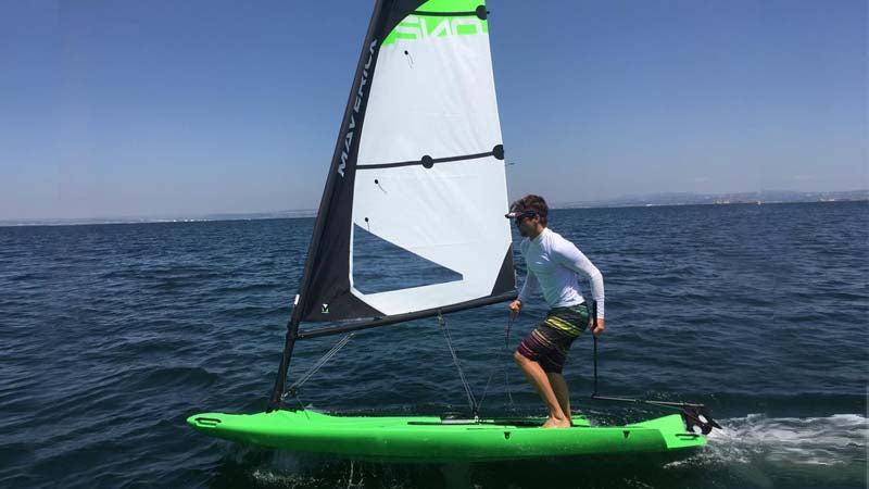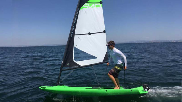 Meet the Maverick, the clever “4-in-1” sailboat that lets you explore paddleboarding, sailing, windsurfing, and stand‑up paddleboarding, all with a single, compact platform. Its rugged scow-style hull (just 3.34 m long and easy to store or transport) converts quickly from a stable dinghy to a windsurf board or SUP, making it ideal for varied programming. Made from maintenance‑free polyethylene and weighing only 43 kg, the Maverick is lightweight, durable, and accessible for newcomers and youth sailors alike. With its versatile design and simplicity, the Maverick is the perfect addition to any fleet looking to inspire fun, flexible, and multi‑discipline water experiences.