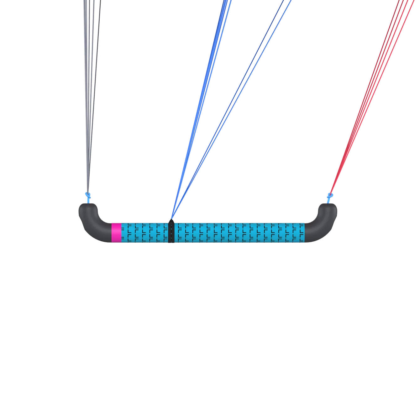 The Stash is designed for practical use on the water. It features color-coded bridles, a clearly marked center on the leading edge for easy grabbing during re-launch, and an intuitive color code on the ergonomic carbon control bar—so you always know which side leads. Every detail is aimed at making true free-flight more intuitive and approachable.