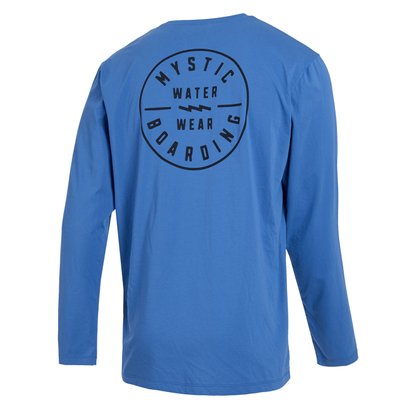 Embrace your next water adventure with the Mystic Boarding, L/S Quickdry Shirt in a vibrant Blue Sky shade. Tailored for performance, this long-sleeve tee is crafted for wakeboarding, kiteboarding, boating, and all your favorite watersports. Designed with a breathable cotton-polyester blend, it keeps you cool under pressure and dries quickly after any splash. Mystic waterwear prints on the chest and back add a sporty, bold flair, while the UPF 50+ protection shields your skin from harsh sun exposure. With a comfortable regular fit and lightweight feel, this is the ultimate quick-dry shirt for serious water enthusiasts.