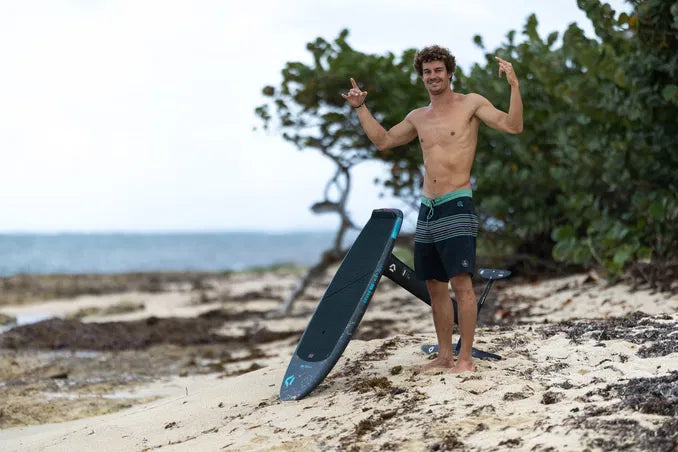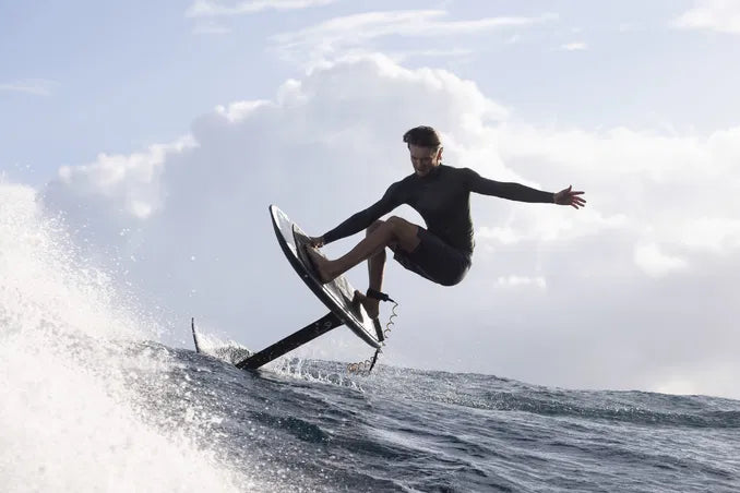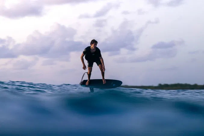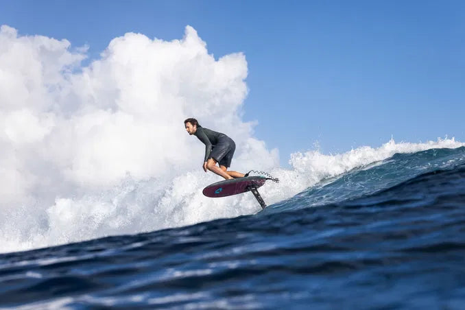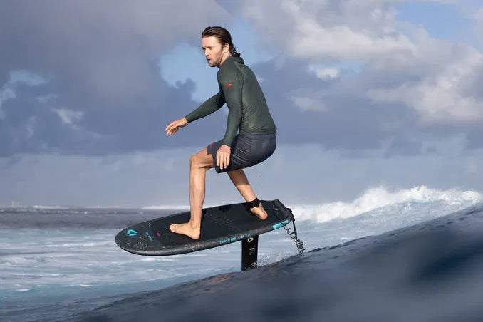 A low rocker line promotes efficient pumping and smooth wave connections, while the thin deck provides a direct and responsive connection to the foil. Soft rails improve comfort and forgiveness during touchdowns and make handling easier during duck dives. Tail cut-outs support clean water release and easier take-offs, while a subtle nose rocker helps prevent plowing and maintains smooth ride characteristics.