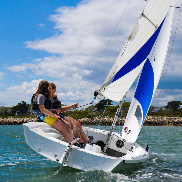 The RS Venture is a modern 16-foot recreational dinghy built with durable fiberglass construction and designed for family cruising, sail training, and inclusive sailing programs. With a spacious cockpit capable of accommodating up to eight people, it provides a stable and confidence-inspiring platform for a wide range of sailing activities.
