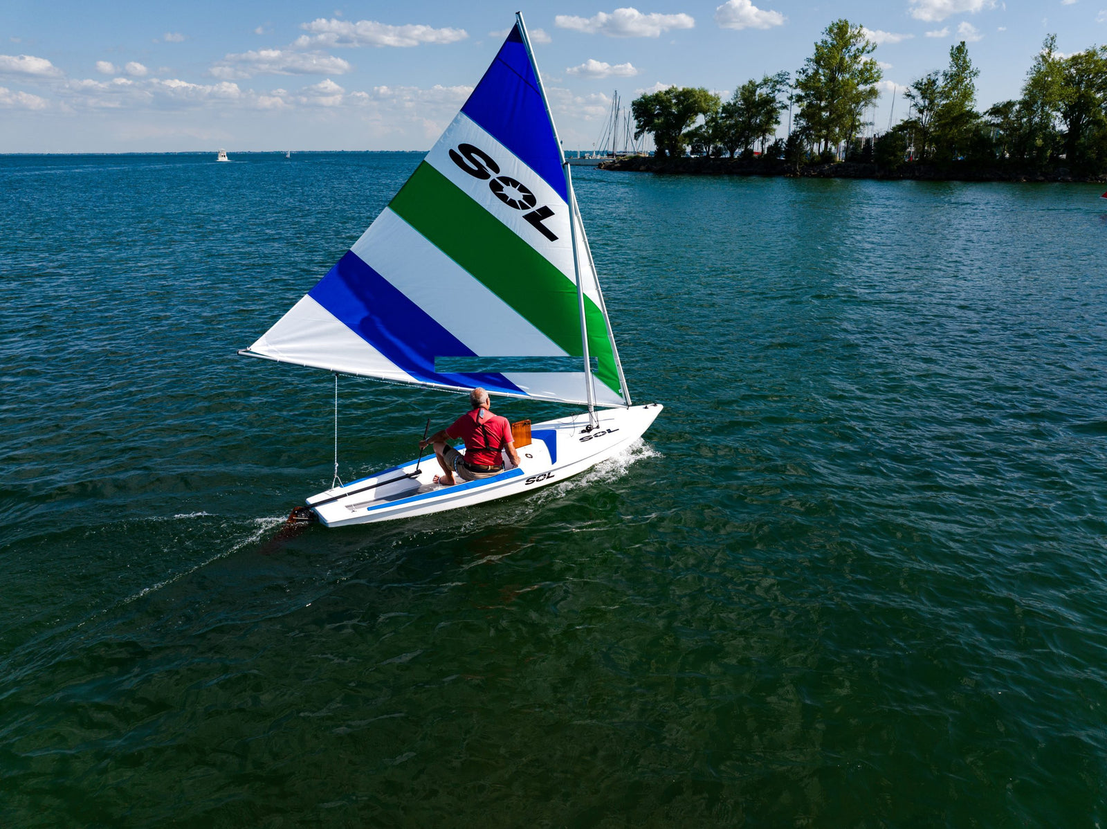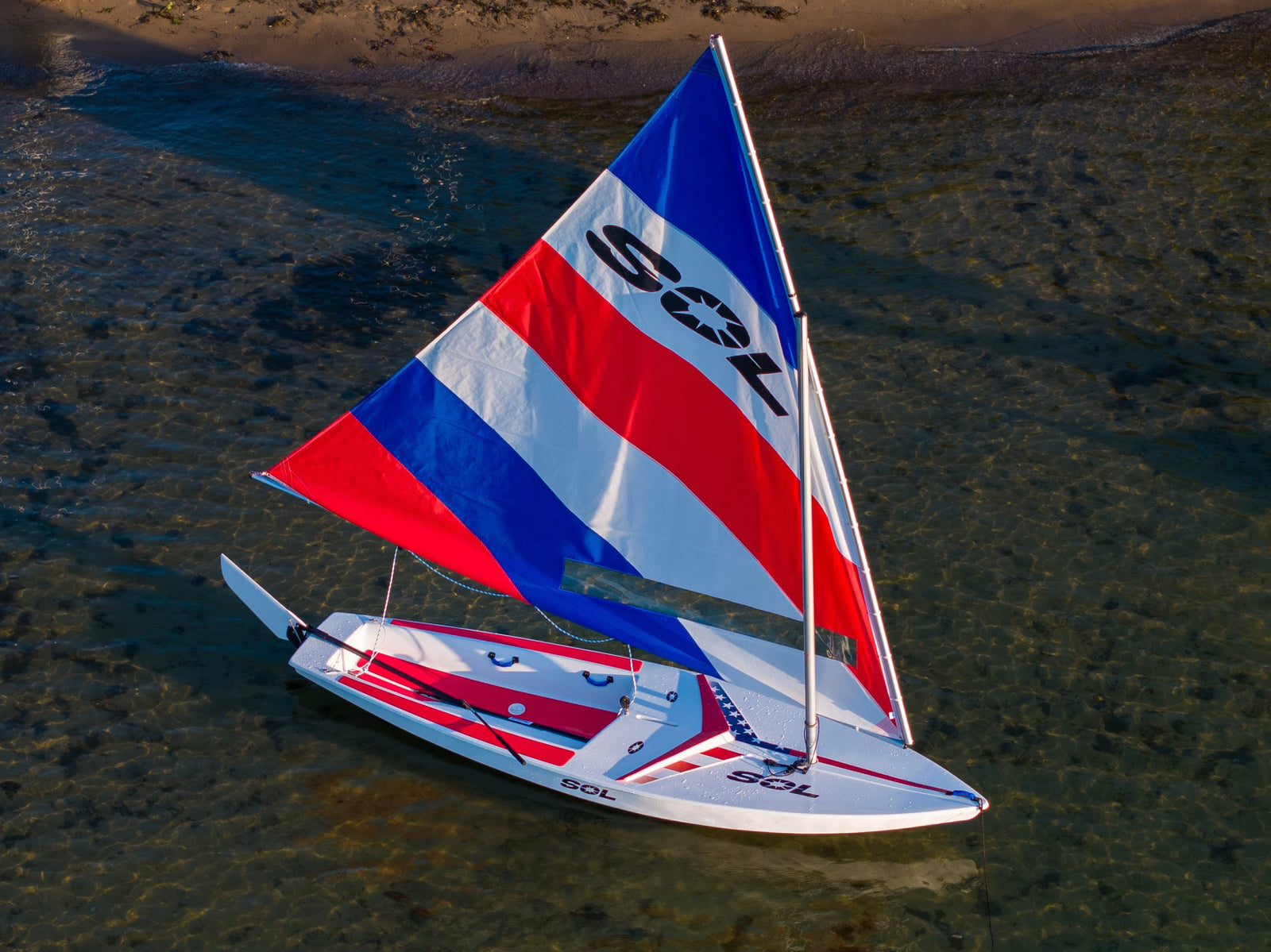 The Sol is designed for straightforward setup and efficient rigging. The aluminum mast system is lightweight and easy to step, making preparation at the launch area simple and manageable. The sail attaches quickly, and control systems are arranged for intuitive handling.